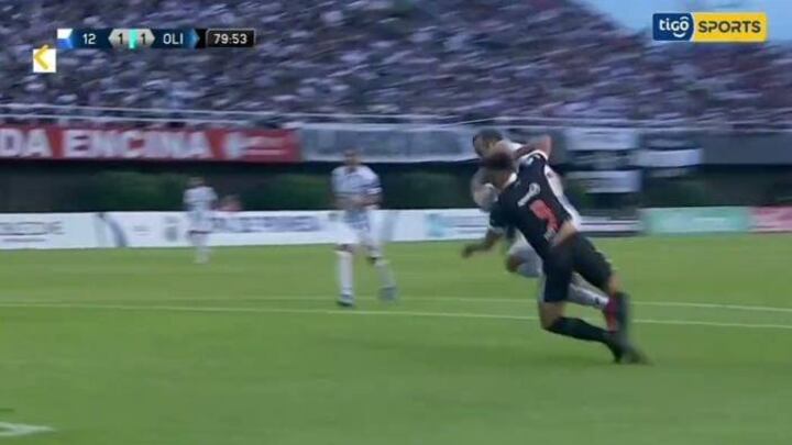 Desde el Antonio Aranda de Ciudad del Este, el partido iba 1-1. A los 79', se da un choque en el área entre Walter González (Olimpia) y Alex Garcete (12 de Octubre). Tras revisar el VAR, David Ojeda cobró penal para Olimpia.