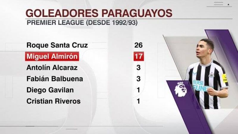 Pero hay también un dato que le pone allaité arriba entre los paraguayos que jugaron alguna vez en la poderosa liga inglesa. El de ser, por ahora, el segundo en la lista de máximos artilleros, solo superado por Roque Santa Cruz, que jugó en el Blackburn Rovers y el Manchester City.
