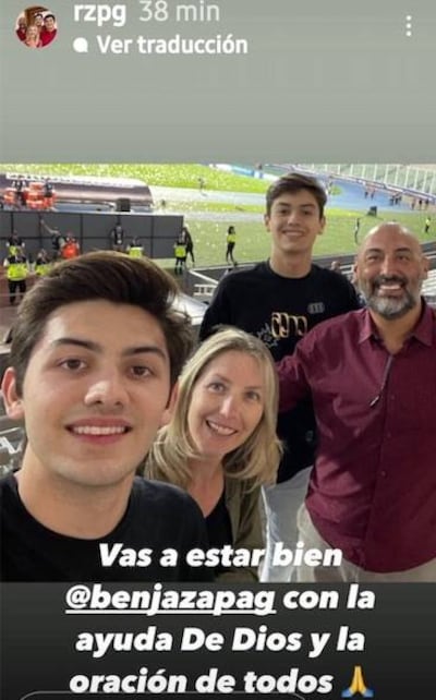 "Vas a estar bien Benja Zapag, con la ayuda de Dios y la oración de todos", fue lo que escribió Raúl Zapag, quien dijo que de onda nomás le pegaron a su hijo.