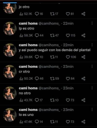 A partir de ahí, la gente quería saber si era cierto lo de Tini, y con quien lo que se metió. En plenas celebraciones de Año Nuevo, una cuenta con el nombre de Camila Homs empezó a tirar flores a De Paul y dando iniciales de los peloteros de la selección con los que Tini estuvo supuestamente. Eso hizo que la gente comience a unir con flechas y sacar los nombres de los peloteros.