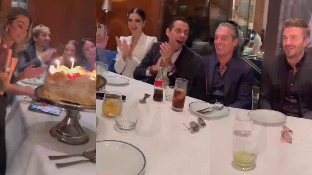 Le cantaron el "Que lo cumplas feliz" cuando llegó la medianoche y al momento de pedir sus deseos antes de apagar las velitas, Marc Anthony le sacó el anillo a Nadia y le pasó a Maluma, bromeando, para que entre sus deseos incluya su pedido de matrimonio a su novia que estaba a su lado.