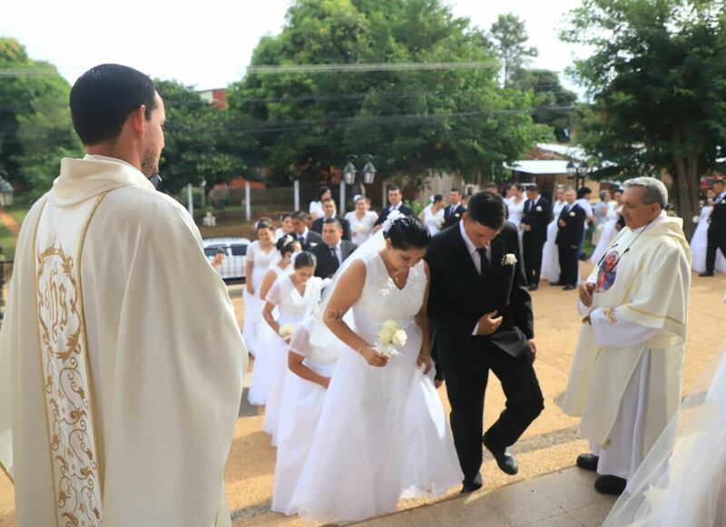 Y eso fue lo que ocurrió hoy en la Parroquia Santa Lucía, de Villarrica, Guairá, pero por ¡multitud!. Allí, unas 51 parejas de distintas comunidades dieron el “Sí Acepto” a través de un casamiento comunitario.