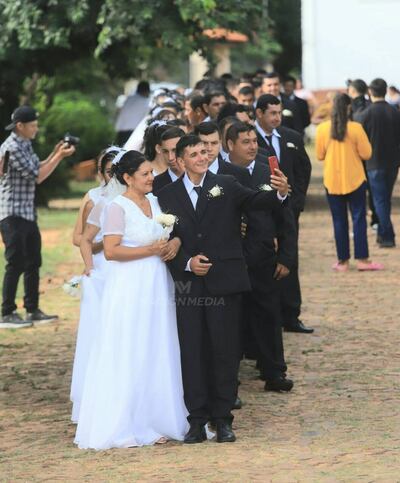 En total, 51 parejas regularizaron su situación ante Dios y la ley. La mayoría de ellas llevaban ya varios años viviendo juntos, aunque sin los papeles, como explicó el pa’i de la parroquia en una emotiva ceremonia.