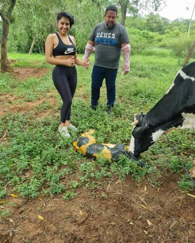 "Ae presentaron algunas complicaciones porque la vaquilla estaba mal posicionada y su mami es primeriza. Pero gracias a Dios todo salió tan lindo, quería mostrarles y comentarles esta gran experiencia", dijo Janet a través de sus redes al comentar las fotos.