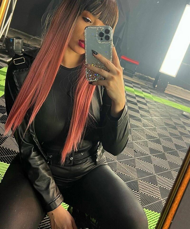 La patronal del Will Fretes, presentó así un llamativo color de pelo entre negro cerca de la raíz y un tono rojizo a rosa desde la mitad hasta las puntas. Acompañando todo con una vestimenta con mucho negro, como de chica mala.