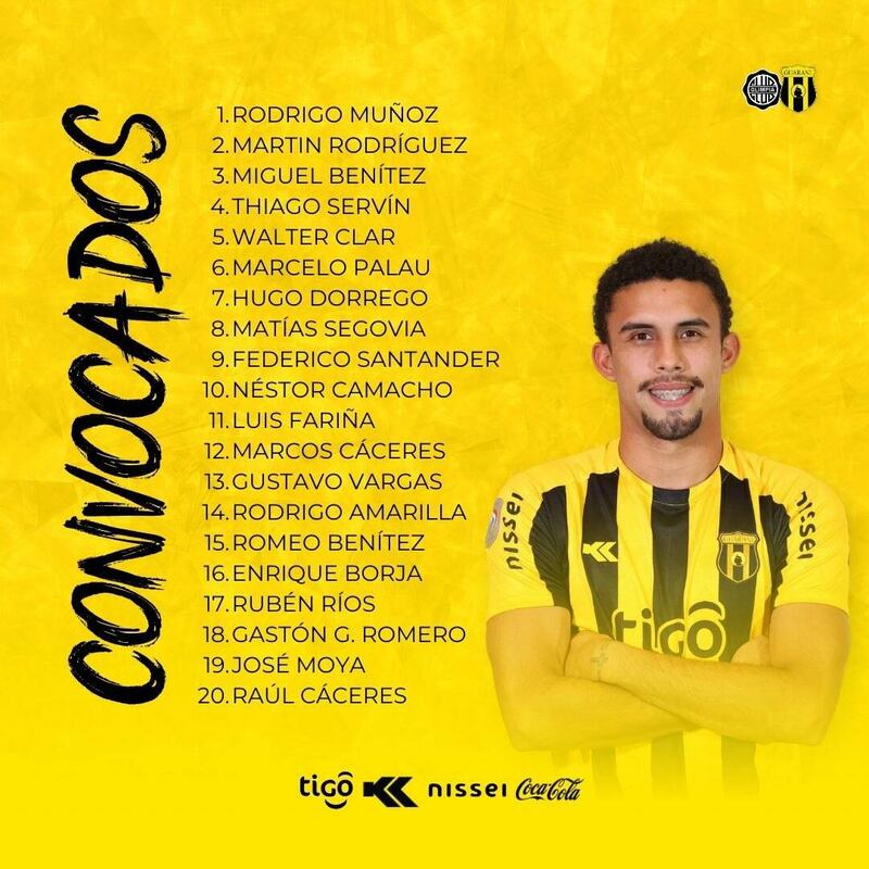 El charrúa Diego Aguirre no podrá contar con varias de sus principales figuras para este juego como Derlis González, Brain Montenegro, Facundo Bruera, Richard Ortíz, entre otros. Este es el peor momento del Decano en el campeonato y el bajón justo le agarra en el inicio de la fase de grupos de la Copa Libertadores de América.