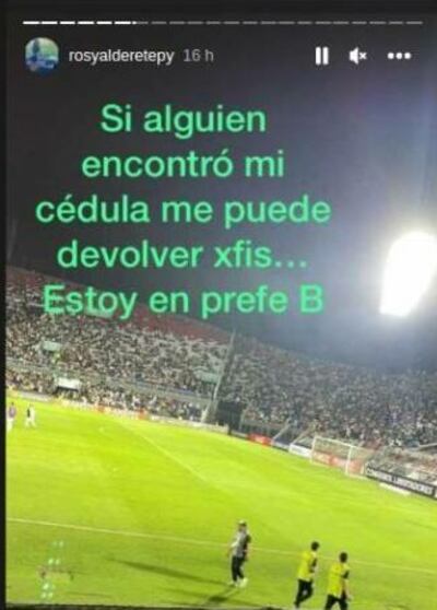 "Antes de finalizar el primer tiempo fui al baño y me percaté de que ya no tenía mi cédula, terminó el partido y fui a hacer la denuncia. Ya hoy me escribieron a decirme que lo encontraron y tengo que ir a buscar", mencionó Rosy ya en contacto con Crónica.