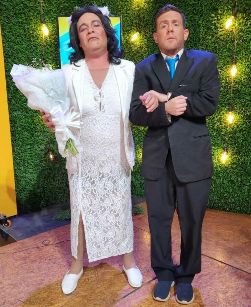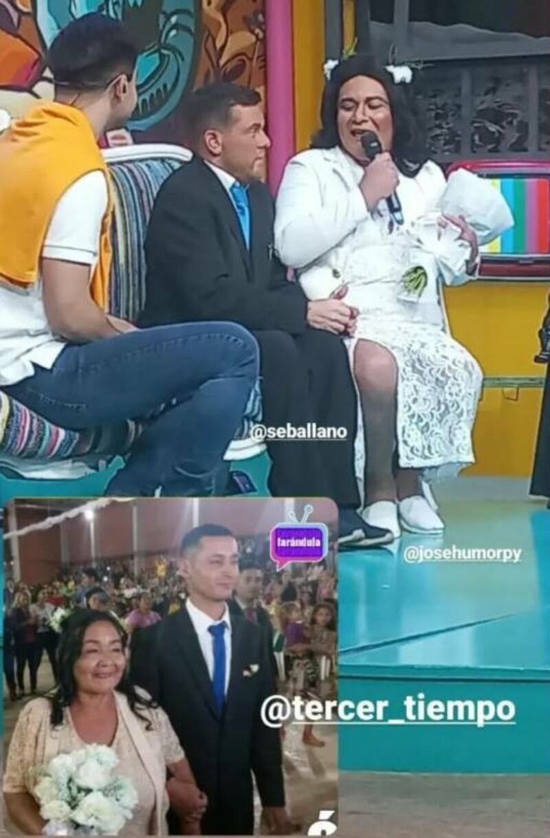 De esta manera, los "recién casados" hicieron su ingreso al set de televisión presentándose más bien como "Ña Dulfina y Jua Ramo" (José Núñez y Seba Llano). Armaron un javorái jefe y divirtieron a los televidentes con sus ocurrencias.