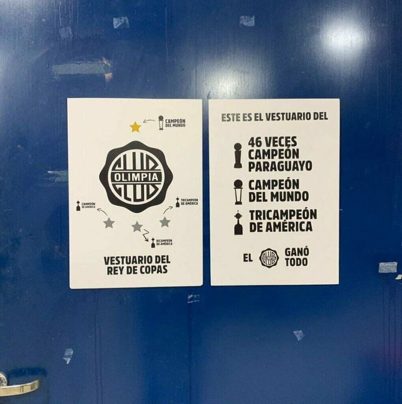 Detallando los logros internacionales a lo largo de su historia, los olimpistas estamparon unas calcomanías en la puerta del camerino visitante, del mencionado recinto deportivo.