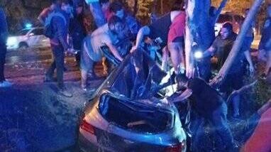 El suceso se dio cerca de las 21:00 horas en inmediaciones del monumento de Las Residentas. Aunque el auto quedó completamente destrozado, se puede considerar un verdadero milagro que el conductor no perdiera la vida tras el impacto.