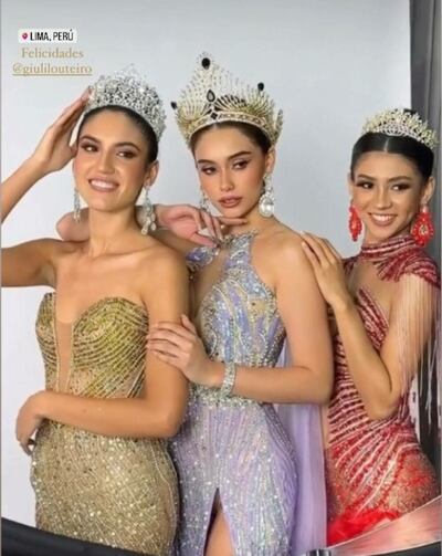 “¡Muy contenta con los resultados mi Paraguay! Virreina Top Model International y Mejor vestido de gala gracias a Negro Vázquez”, expresó Giuliana Louteiro en sus historias de Instagram desde Perú, antes de regresar a tierra guaraní tras su destacada participación en el certamen de belleza internacional.
