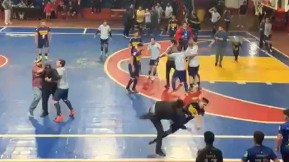 Pero, en una de esas, a uno se le fue demás una pierna, lo que fue duramente reclamado por otro. Al toque se metieron 10 más y en cuestión de segundos era un todos contra todos donde el famoso piña va, piña viene se hizo sentir en la mandíbula de más de uno.
