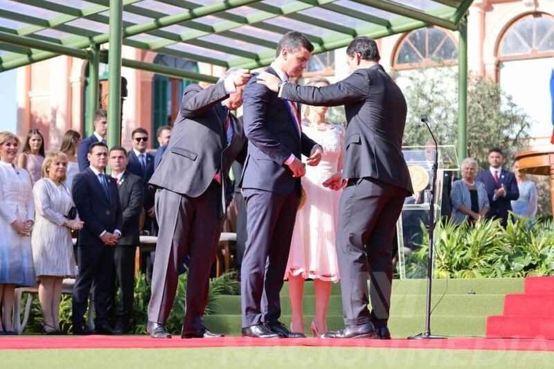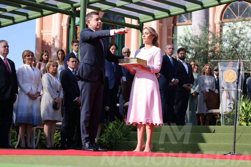 Momento en el que invisten con la banda presidencial a Santiago Peña. (Foto: Nación Media)