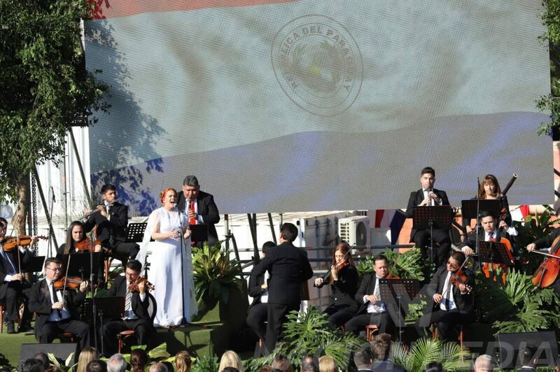 Momento de entonación del himno nacional por parte de Melissa Hicks, toque por demás emotivo del acto. (Foto: Nación Media)