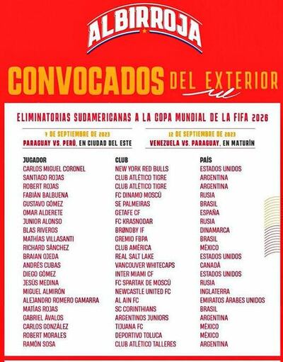 Hay 21 peloteros que chutan en el exterior que fueron convocados, pero entre ellos no figuran dos de los que en los últimos tiempos más se hablo en nuestro país: Adam Bareiro y Matías Segovia.
