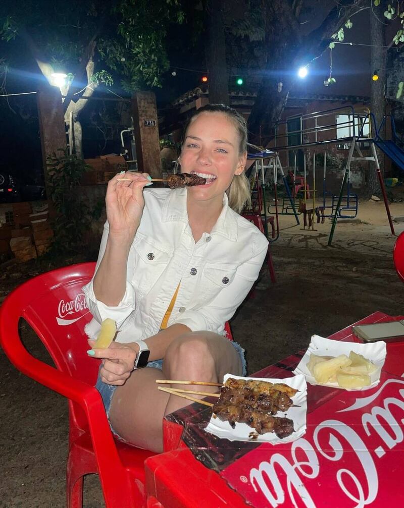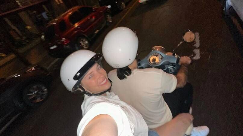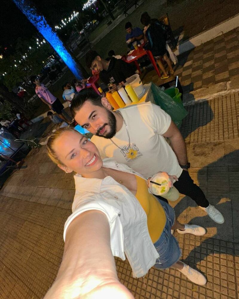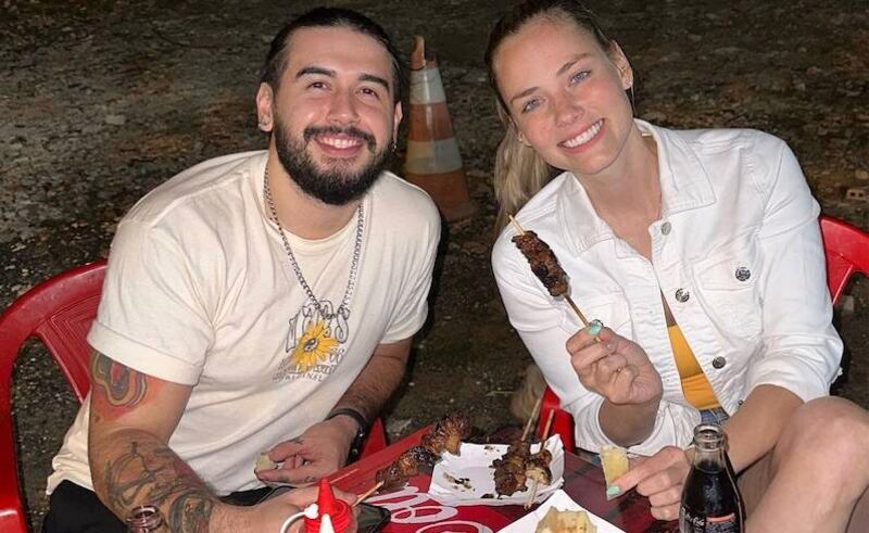 El fin de semana se dio el encuentro y la pareja mostró en redes que fueron en moto hasta un asaditero. Se sentaron en la vereda y con palito en mano se pusieron a degustar la carnecita.
