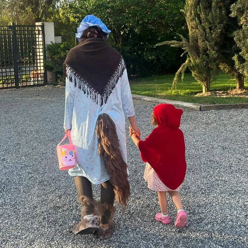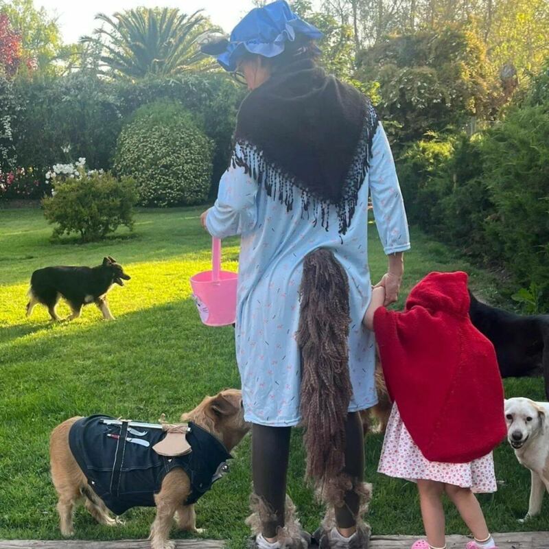 La escritora se disfrazó de un lobo y su hija, de Caperucita roja. En las fotos se ve a madre e hija paseando con sus disfraces y Pabla contó que se vio forzada a pisar sus palabras por su retoñita.