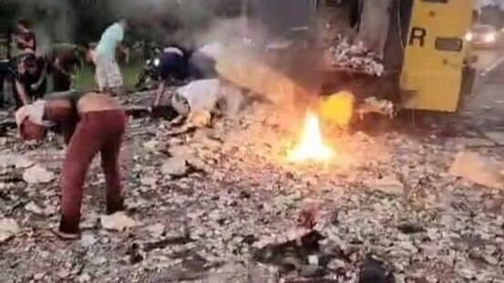 El camión explotó, el dinero voló por todos lados y la gente comenzó a juntar los fajos.