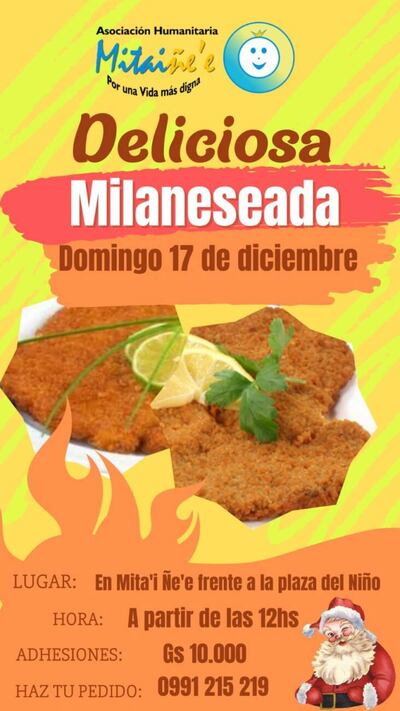 Este 17 de diciembre se realiza una milaneseada para recaudar dinero y poder comprar los regalitos o también se espera la donación de la gente.