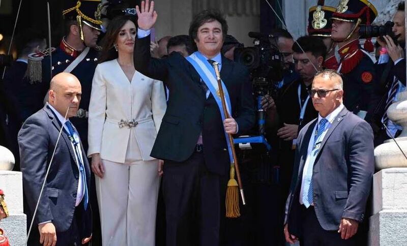 Milei no habló ante los legisladores, sino que se trasladó hasta las escalinatas de acceso al Congreso, desde donde ofreció su primer discurso como presidente en funciones ante una enorme multitud que llegó hasta ahí para escucharlo.