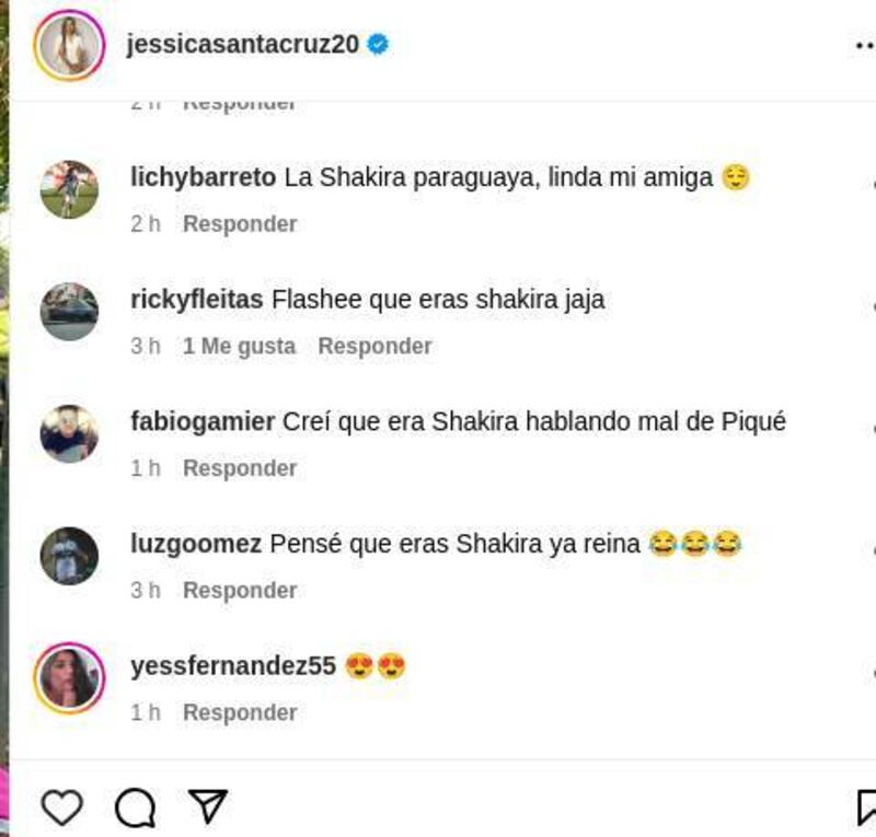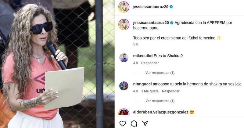 Ya en la cancha le confundieron con Shakira y cuando posteó su foto en sus redes, todos sus seguidores empezaron a decirle que creyeron que era la cantante colombiana.