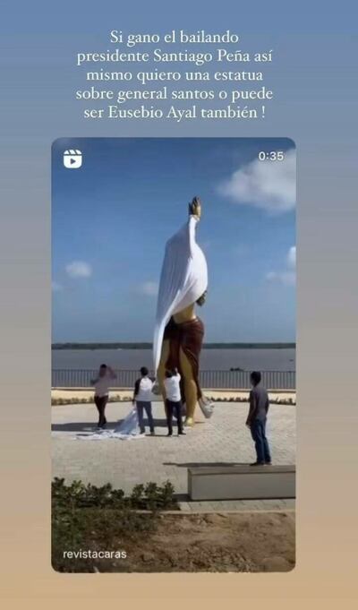 “Si gano el Bailando, presidente Santiago Peña, asi mismo quiero una estatua sobre General Santos o puede ser Eusebio Ayala también”, escribió la actriz.