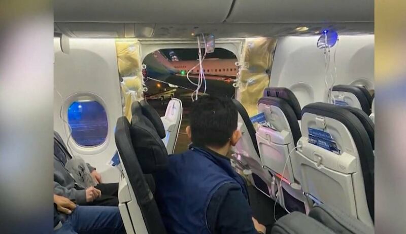 El dramático hecho se dio en la tarde del viernes pasado. El avión, que había salido de Portland, en yanquilandia, con destino a Ontario, en Canadá, se vio obligado a volver a tierra solo unos minutos después de haber despegado. Por el enorme agujero que se abrió en uno de los costados, se produjo una despresurización, es decir, el interior de la nave quedó sometido a la gran presión que se debe soportar en las alturas.