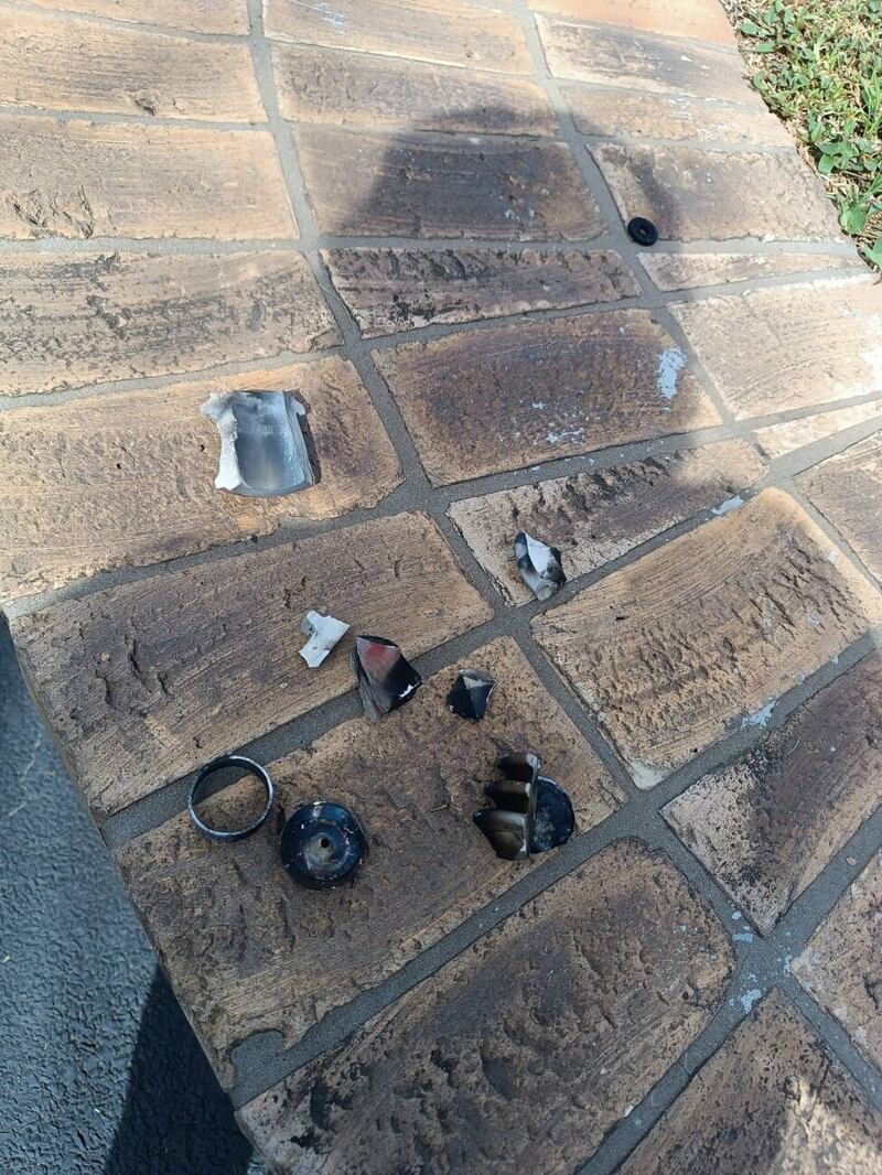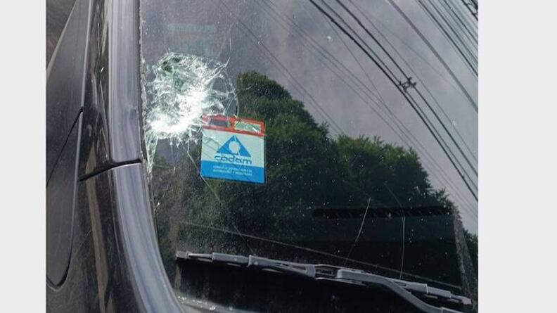 Desde lo alto de la columna, unos pedazos de metal volaron por todos lados durante la explosión, y algunos de ellos cayó sobre el parabrisas de la joven, obviamente los rompió. "¿Y ahora?" escribió la joven abajo de su plagueo, con mucha impotencia y sin saber a quién uno puede ir a reclamar cosas como estas.