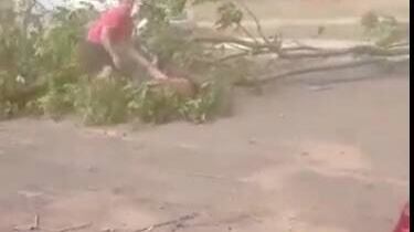 Un hombre que iba caminando por la calle fue alcanzado por un árbol que cayó justito sobre él.