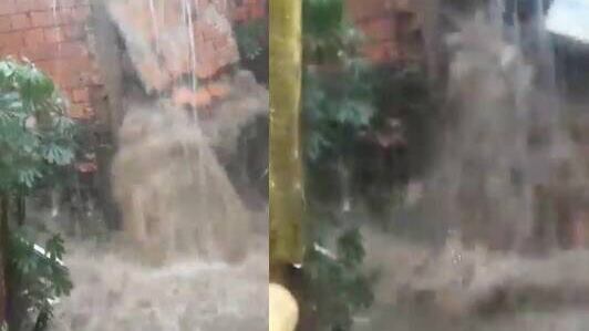 En redes recorre un video donde muestra exactamente cómo el agua tumba la pared de una casa, arrastrando a su paso el lavarropas y todo lo que había.
