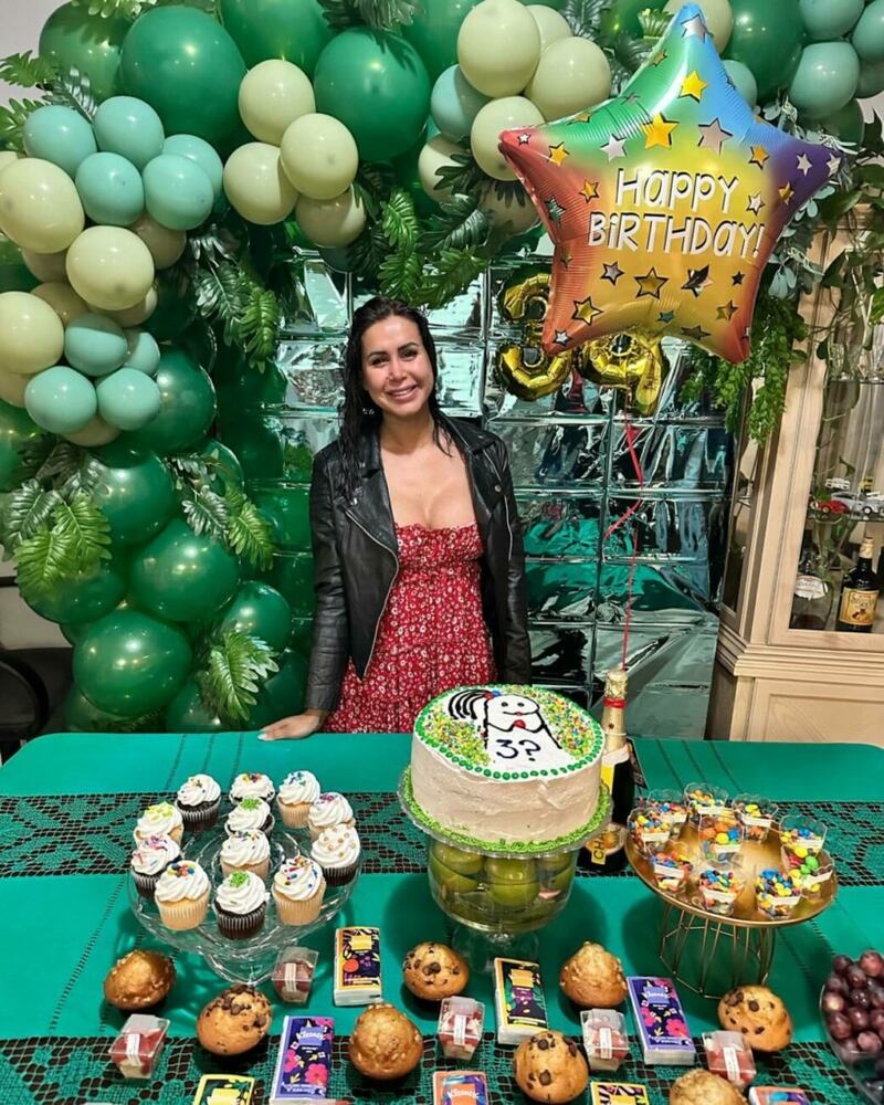 La Sly festeja un año más de vida y mostró que su ména y su familia política le hicieron un festejo con globos y torta.
