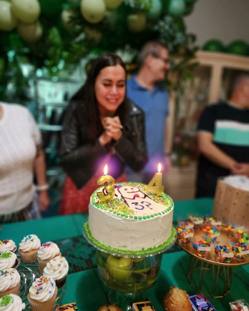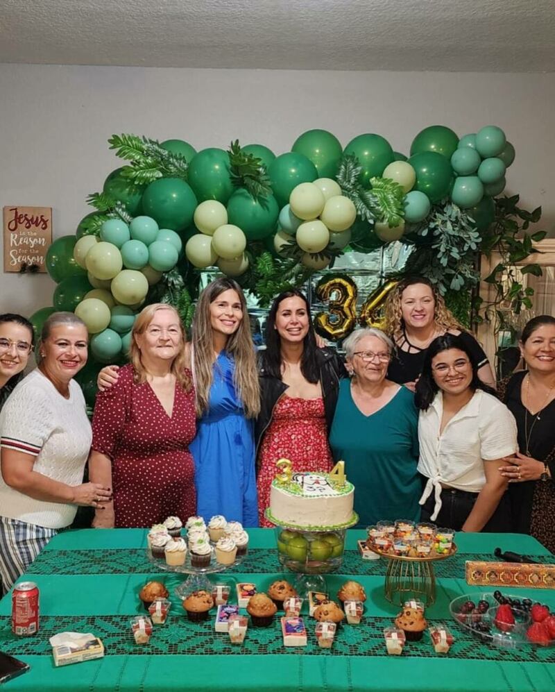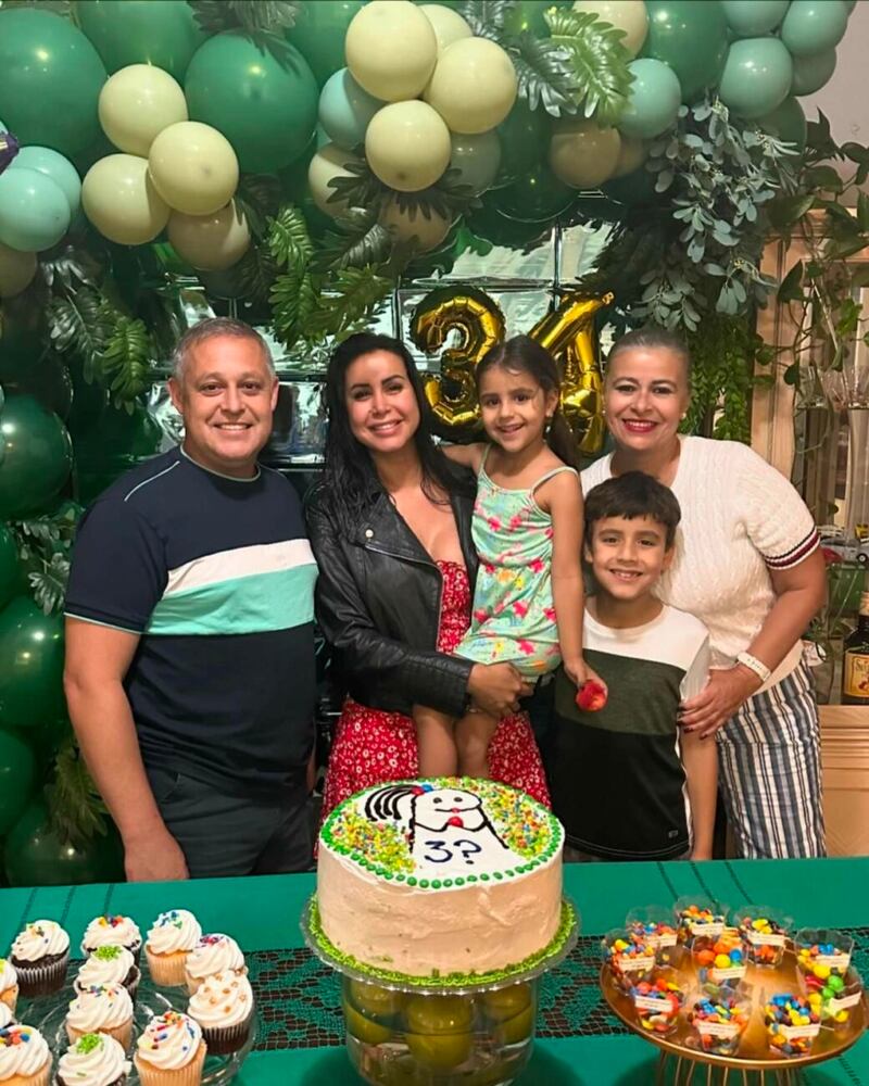 “Me hicieron una fiesta sorpresa. Estoy tan aguará de sentir el cariño de todos tengo muchas fotos videos que voy a compartir con todos. Treinta y cuatro añitos, si bien tu venida fue un sube y baja de presión. Dios mío llegue a los 34 con Metrópolol, Lisinopril, Lorsatan nunga. ¡Señoraa ya suélteme! Estoy tan feliz con todo lo que tengo hoy, una hermosa familia numerosa, un marido increíble. Definitivamente soy la hija mimada de mi papito Dios”, tecleó Jessica mostrando cómo fue su festejo.