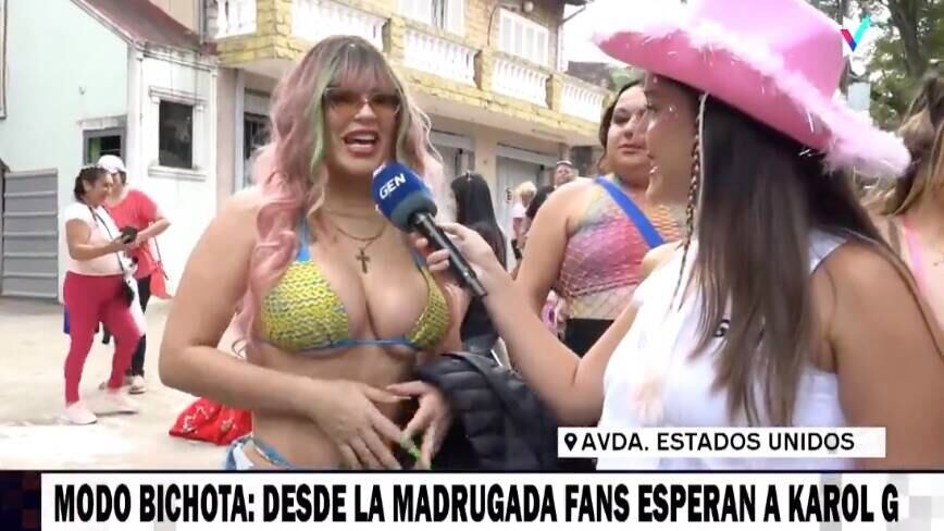 Desde temprano la fila ya se armó a todo lo largo de 5ta Avenida, gente veniendo sombreros, remeras, ere erea. Esta noche actúa Karol G en el país a las 21 hs.