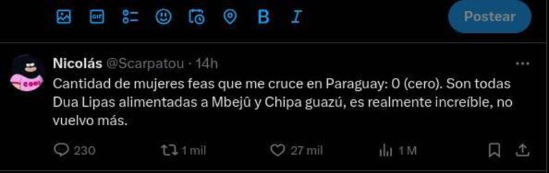 Estos fueron algunos de los tantos comentarios que hicieron los hinchas de Racing sobre las paraguayas durante su paso por Asunción. .