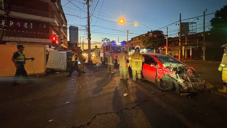 Todo pasó en una zona de mucho tránsito en las cercanías de lo que era la terminal de ómnibus de Asunción, limitando con “Lamber City”. El camioncito se cruzó en el camino de un Toyota Vitz que le agarró tan bien que lo hizo volcar. Quien manejaba el auto sufrió un fuerte golpe en el estómago que hizo que le tengan que derivan a un nosocomio.