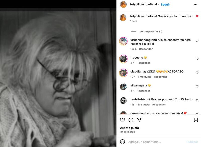 La gente rápidamente notó ese detalle y empezaron a escribirle emotivas palabras como “Le fuiste a hacer compañía Toty querido” o “Gracias por tanto Toty Ciliberto”.