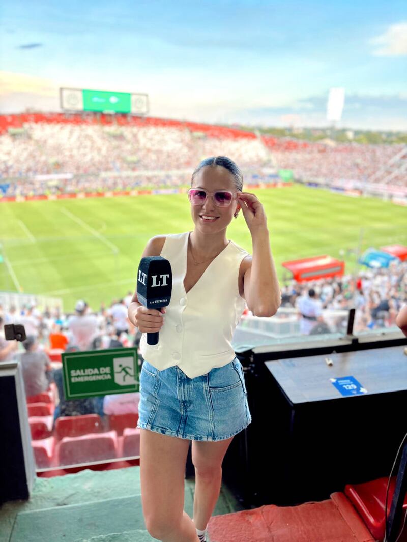 En las coberturas nunca le faltan los piropos, las miraditas, hasta incluso las fotos de parte de sus fans. Ella es Ambar Rallo, conocida también como la hermanita perdida de Larissa Riquelme, una de las figuras más jóvenes de La Tribu 650 AM. A su corta edad como periodista deportiva ya tiene su pase de ida a la Copa del Mundo 2026.